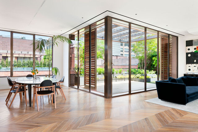 Elite downtown conversions of prewar commercial buildings offer landmarked character with loft-like layouts. This duplex penthouse was customized with generous opposing terraces on the open plan entry floor and conversion of a 2nd bedroom on the lower level to a walk-in closet. “Paparazzi-proof” amenities include drive-in underground arrival with valet, a 2nd lobby with private elevators and an enclosed central courtyard.